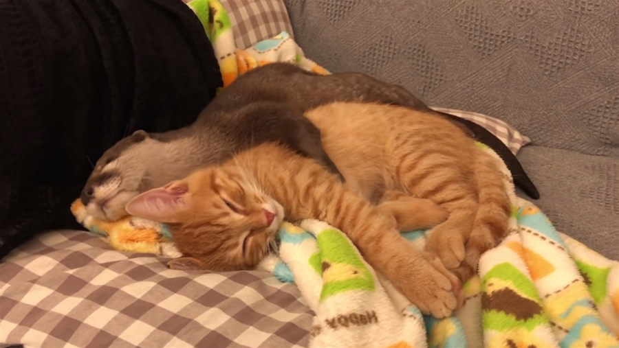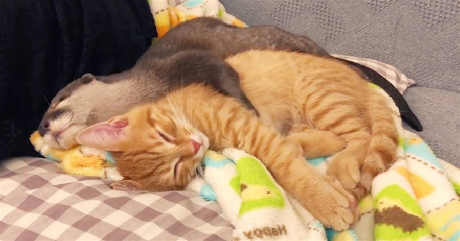 Bạn là gối của con rối ~ “TT dính hàng ngày” của mèo và rái cá, hoàng đế meo meo để hình ảnh “ôm ngủ” quá ấm áp!