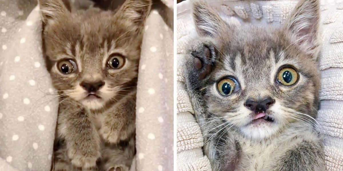 Chú mèo con có đôi mắt không đều này được tìm thấy trên đường phố và có cơ hội có một cuộc sống tốt đẹp hơn.