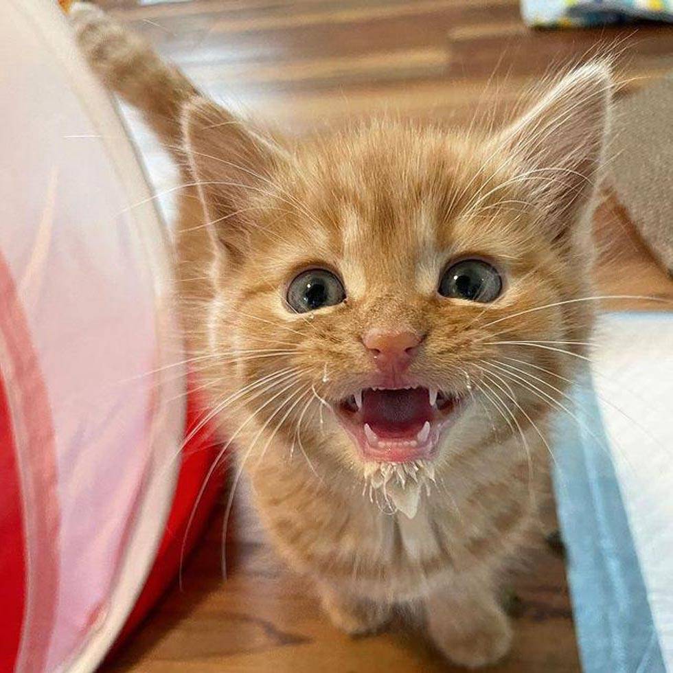 Chú mèo nhỏ màu cam vừa đến nhà mới và trốn dưới chăn, “Mèo ác gầm lên”! Vài ngày sau, “Thịt viên hồng lộ diện” khoe sự dễ thương: Để tôi cho bạn xem ❤️
