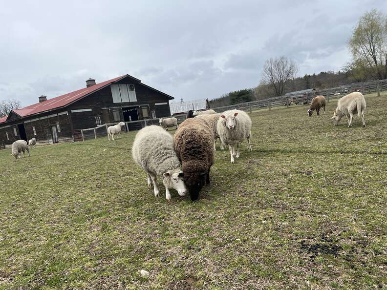 “Toni, the shortest sheep, led everyone else to come see who the new sheep was,” Riki Higgins, the social media coordinator at Woodstock Farm Sanctuary, told The Dodo. “They are used to introductions of new rescues every now and then. They were all excited and very interested to sniff and get to know her.”