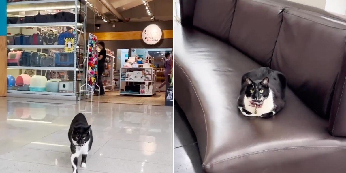 Con mèo được giải cứu bước vào trung tâm mua sắm và quyết định cô ấy sống ở đó bây giờ