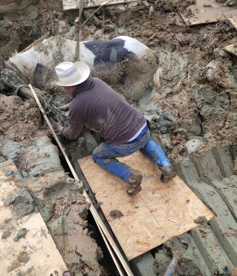 Finally, rescuers had room to strap a harness around the horse’s midsection. Carefully, they pulled the frightened horse to safety.