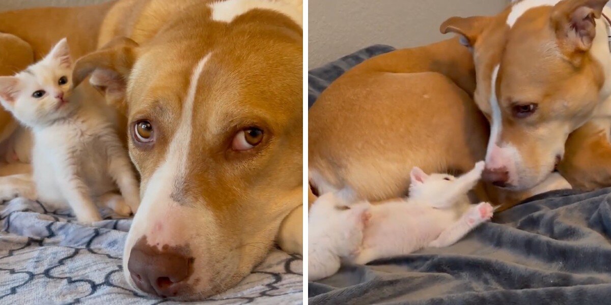 Giải cứu Pittie nhớ những chú chó con của mình yêu những chú mèo con cần mẹ