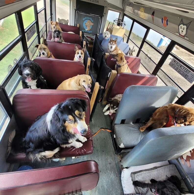 Thay vì tràn ngập những đứa trẻ tràn đầy năng lượng, chiếc xe buýt Ruff and Puff màu xanh bột chở những chú chó hào hứng đến công viên hầu hết các buổi sáng – và những hành khách lông xù của nó không thể chờ đợi để nhảy vào đi xe mỗi lần.