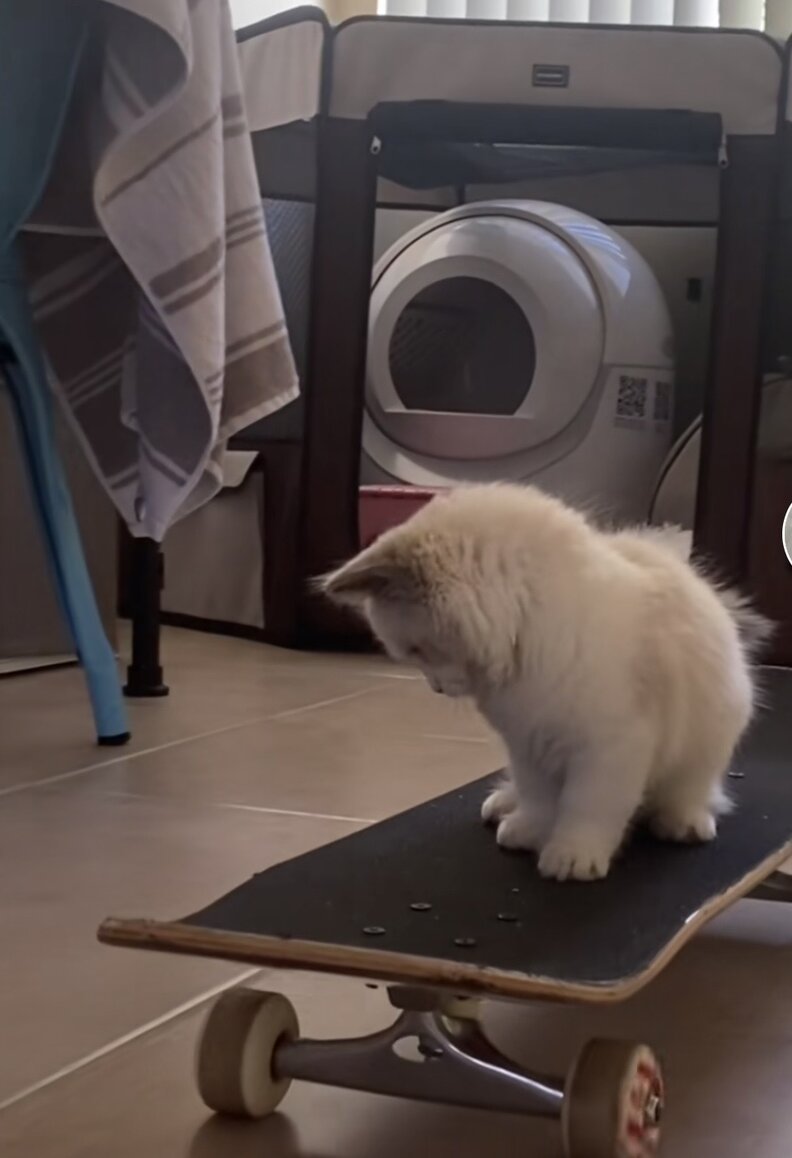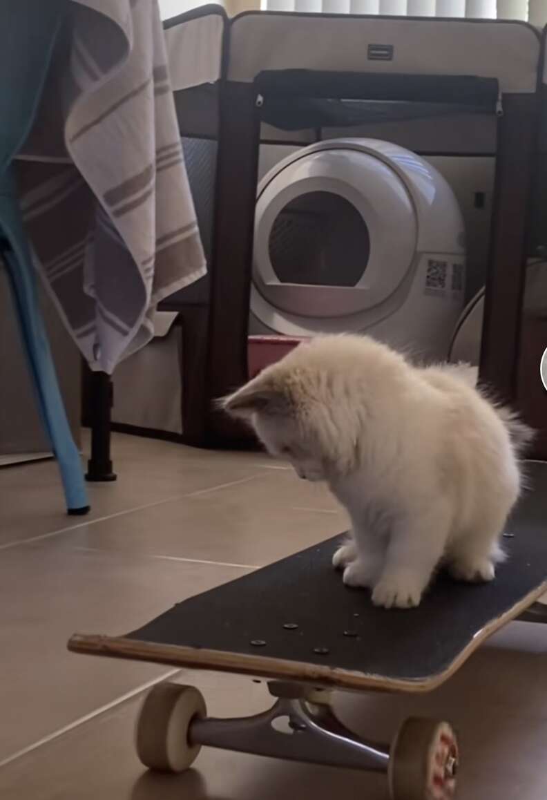 Hầu hết mèo và mèo con nhận được nhiều giải trí từ đồ chơi mèo truyền thống. Nhưng Puka mạo hiểm hơn một chút so với chú mèo con điển hình của bạn – cô ấy thích trượt ván.