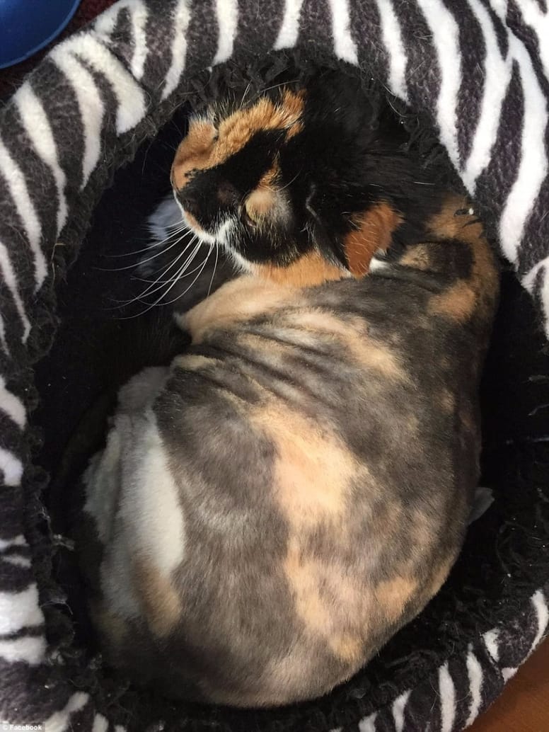 Con mèo calico 14 tuổi này (nếu bạn muốn biết thêm về loại mèo này bấm vào đây) đã bị bỏ rơi nghiêm trọng, và không phải vì chủ của nó độc ác, mà vì anh ta cũng cần sự giúp đỡ. Bà già này, không trông giống như một chú mèo con dễ thương, có thể bị nhầm lẫn với một con bạch tuộc có lông. Thật tiếc!