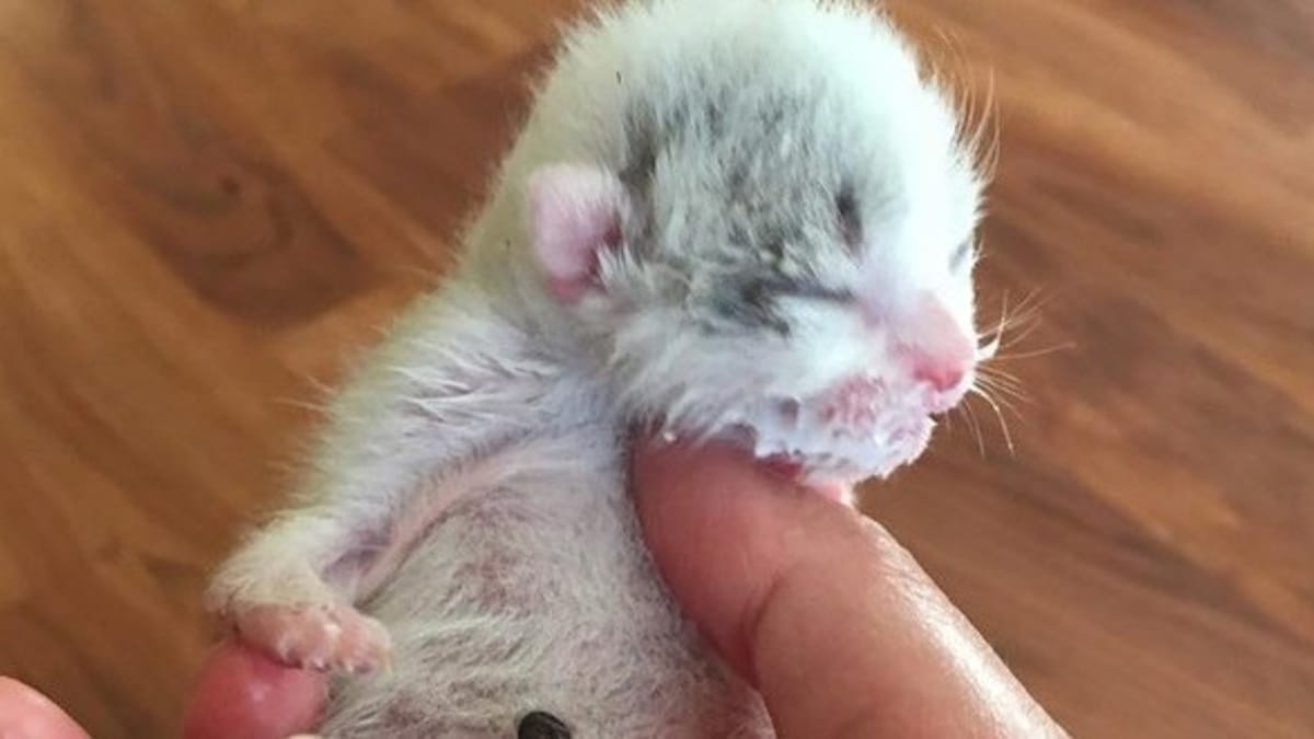 Đó là một con mèo nhỏ chỉ nặng một trăm gram được phát hiện ở khu phố trung tâm thành phố San Jose. Bị bỏ rơi và trong tình trạng tồi tệ, con mèo đã được giải cứu bởi Saving Grace Rescue ở San Francisco. “Anh ấy sẽ được an tử vài giờ sau đó nếu không được giải cứu”, gia đình nuôi của anh nói.