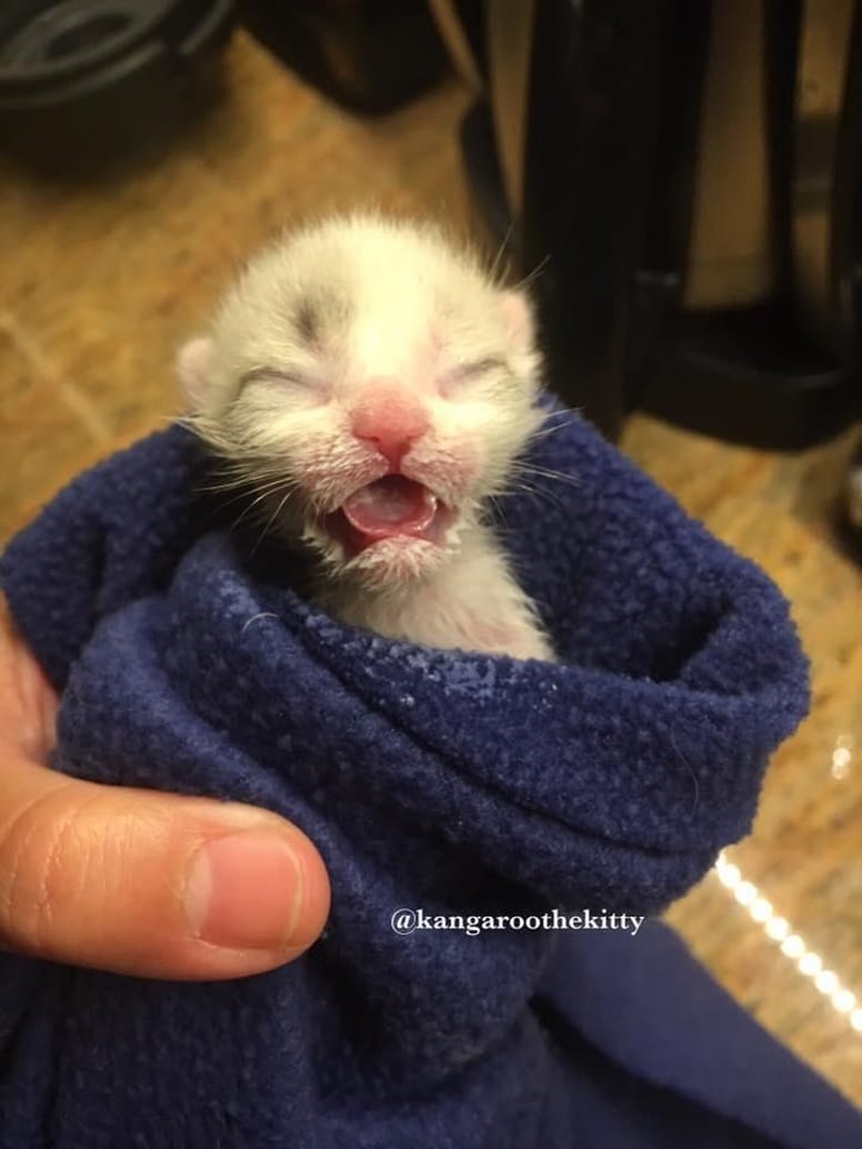 Đó là một con mèo nhỏ chỉ nặng một trăm gram được phát hiện ở khu phố trung tâm thành phố San Jose. Bị bỏ rơi và trong tình trạng tồi tệ, con mèo đã được giải cứu bởi Saving Grace Rescue ở San Francisco. “Anh ấy sẽ được an tử vài giờ sau đó nếu không được giải cứu”, gia đình nuôi của anh nói.