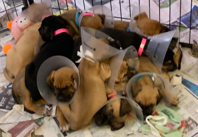 “They were incredibly healthy, which we attribute to Violet caring for them so well,” Jonda said. “We gave the puppies names that start with ‘V.’ For being such a large litter, they get along very well and always pile up together when sleeping. This may be due to their abandonment and need for comfort.”