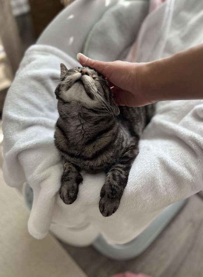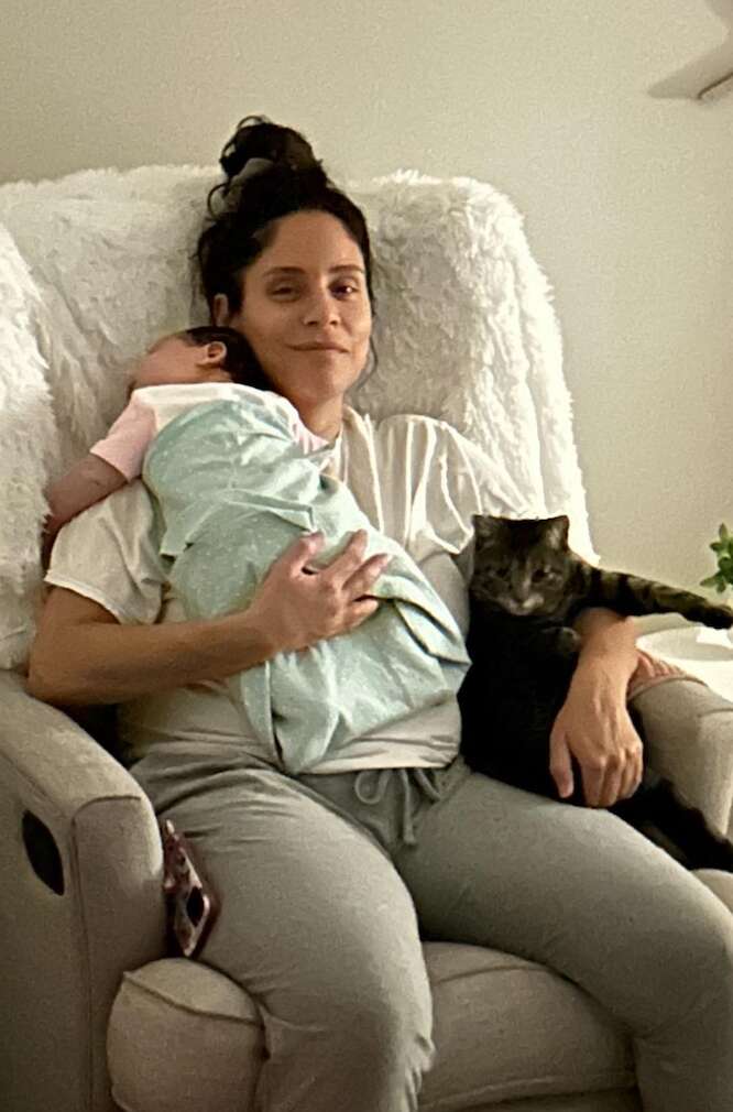 Not long after Lily’s arrival, the Millers learned their family would soon be growing again with a baby on the way. Miller was ecstatic to welcome her future baby girl, but she worried how her cats would react to the new addition.