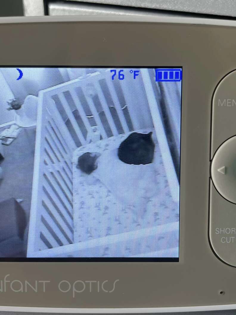 To give Lucy some restful time away from her cat sisters, Miller typically closes her daughter’s bedroom door while she sleeps. But the other day, she glanced at the baby monitor during Lucy’s nap and jumped when she saw a familiar gray lump in the crib.
