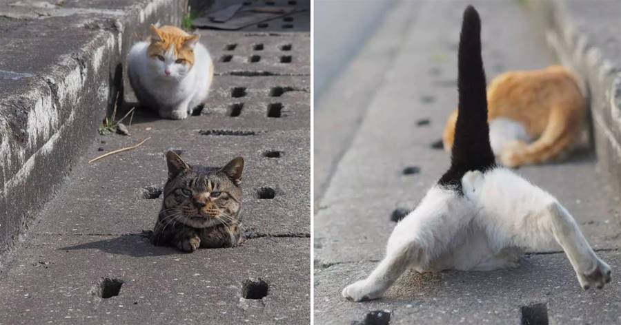 Mèo không chỉ thích đắm mình dưới ánh mặt trời trong khi nghĩ về “tiếng meo meo”, mà còn thích đưa đón qua các lỗ bên đường, nhét bản thân mũm mĩm của chúng vào những cái lỗ nhỏ để chơi trò nhìn trộm thực sự, bí mật quan sát người qua đường và những con đường bình thường đã trở thành sân chơi đường phố của chúng.