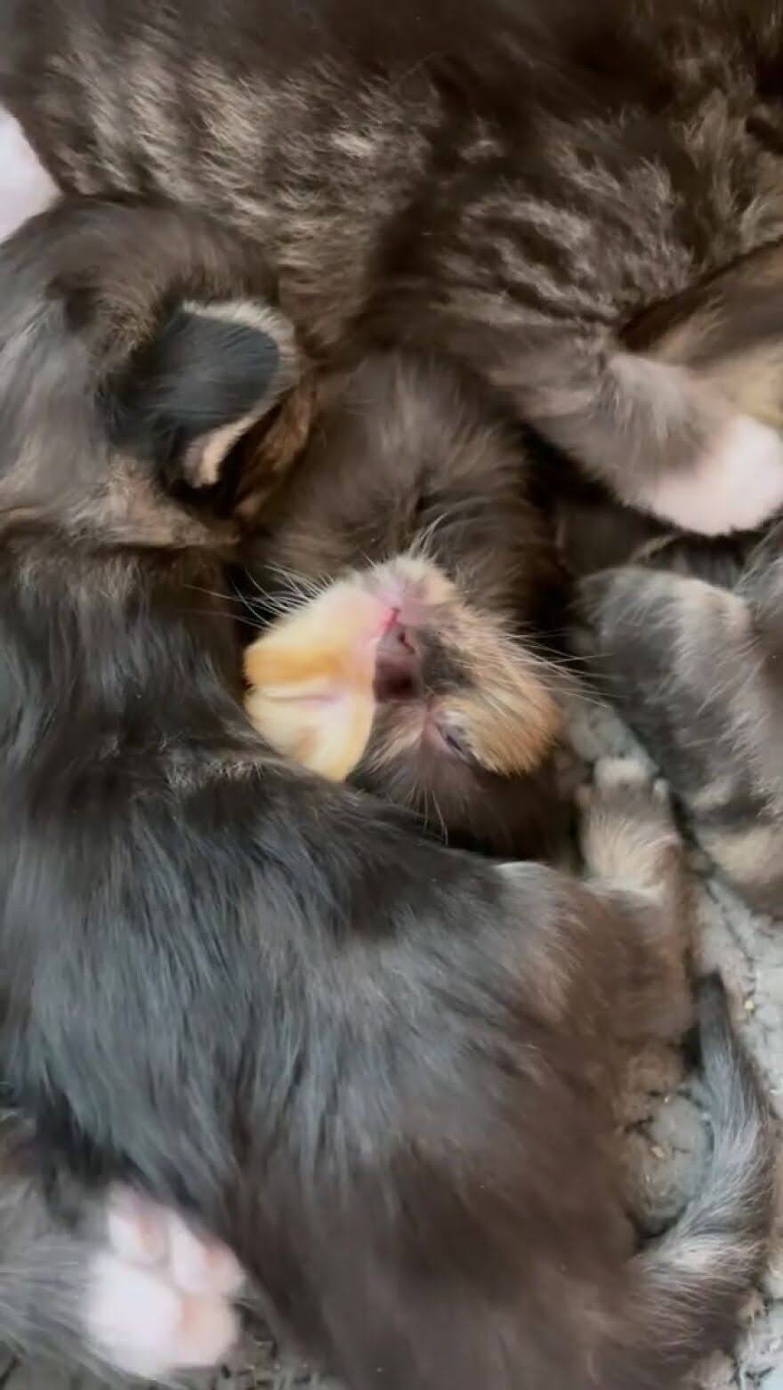 Cô ấy tiếp tục ngủ mặc dù những chú mèo con khác đang bò khắp người cô ấy. Kiki, cha mẹ nuôi của hai chú mèo mẹ Olive và Pickle đã đưa Apricot và Pretzel vào ổ chung khi cô cố gắng giới thiệu chúng một cách chậm rãi. Mặc dù Apricot là một ngôi sao sáng thực sự nhưng Nashville Cat Rescue vẫn luôn tìm kiếm nhà cho mèo trong suốt cả năm.