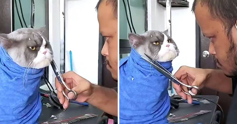 Có một con mèo xám trắng tên là Pumpkin ở Thái Lan, chủ sở hữu đã gửi nó đi cắt vài ngày trước, và nó hờn dỗi suốt thời gian, mang một khuôn mặt hôi thối và trừng mắt với người đẹp. Biểu cảm siêu hài hước này khiến cư dân mạng bật cười.